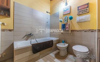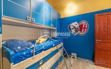 Al primo piano troviamo il secondo bagno finestrato, con vasca, le due camere (di cui una matrimoniale) e un'ulteriore stanza che affaccia sul soggiorno. Inoltre accediamo al piano sotto dove troviamo la l'ampia taverna ideale per poter trascorrere momenti di relax con la propria famiglia.