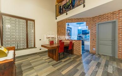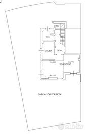 INTERNO: La villetta è composta al piano terra dall'ampio soggiorno e dalla cucina a vista. Proseguendo entriamo in un disimpegno con le scale, il primo bagno con box doccia sulla sinistra ed il box di proprietà sulla destra.