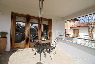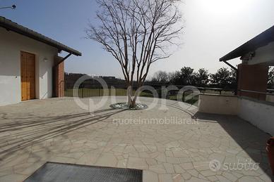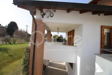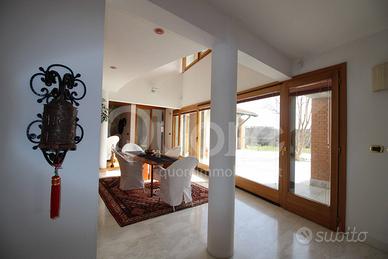Nella frazione di Raspano, a Cassacco, lussuosa villa indipendente progettata dall'Architetto Franceschinis, disposta su tre piani per una superficie totale di 450 mq e con circa 3.000 mq di terreno di proprietà.