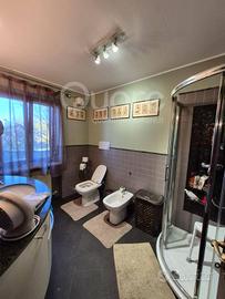 Il piano seminterrato è suddiviso in taverna molto ampia con caminetto , cantina, una zona cucina, una centrale termica accessibile dall'esterno, ulteriore cantina , due bagni ed un garage.