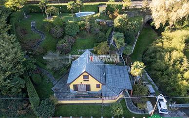 All'esterno, un giardino privato di circa 1.000 mq circonda la villa e ospita una piscina, un'area barbecue e un elegante gazebo in muratura, impreziosito da colonne scolpite e da un romantico glicine rampicante.
