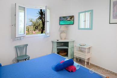 1°- Ingresso "Zona giorno" (vedi piantina)- si accede dalla scala esterna che, porta al piano superiore, dove troviamo una ampia terrazza coperta di circa 50 mq. con tende solari è una spettacolare vista sul golfo della riviera del Corallo che spazia, dagli uliveti secolari al mare dove potete ammirare il promontorio di Capo Caccia di Alghero. Nell'ampia veranda potete rilassarvi con sdrai più tavolo e sedie, dove puoi farti coccolare dalla brezza marina a partire, dalla colazione alla cena. Direttamente dalla veranda si accede ad un rilassante e comodo soggiorno con divano, tavolo con sedie, il tutto climatizzato più un ampio cammino per farsi coccolare nelle fredde giornate invernali, con cassaforte adiacente al soggiorno troviamo la cucina con lavastoviglie.