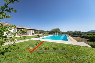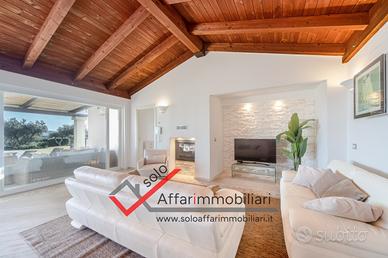 In località Binzolas, proponiamo una splendida villa che risulta in una posizione centrale con possibilità, in pochi minuti, di raggiugere Golfo Aranci, Olbia e Pittulongu e poter visitare alcune delle spiagge più belle della Costa Smeralda.La villa, completamente immersa nel verde, dispone di ampi spazi esterni che includono anche verande, ideali per rilassarsi e godersi la vista panoramica sul golfo. La piscina a sfioro dà la possibilità di godere al massimo la propria vacanza. La villa è composta da due immobili separati, un edificio centrale ed una depandance, offrendo privacy e tranquillità. L'edificio centrale al piano superiore dispone di una veranda coperta con vista panoramica e un ulteriore veranda con barbecue; all'interno è composta da due camere da letto, di cui una con bagno privato e un ulteriore bagno adiacente al disimpegno. L'ampio soggiorno è caratterizzato da una cucina a vista con tutti i comfort. Il piano inferiore è composto da due camere da letto doppie e una quadrupla, un bagno e un locale lavanderia; è inoltre dotato di un ingresso privato esterno offrendo privacy e comodità agli ospiti.La depandance è caratterizzata da una veranda coperta che si affaccia su un ampio giardino, un grande salone con spazio per realizzare un angolo cucina, una camera da letto e un bagno.La proprietà è dotata anche anche di una veranda adibita a parcheggio per garantire un comodo e sicuro posto auto. La villa viene venduta completamente arredata con tutti i comfort.