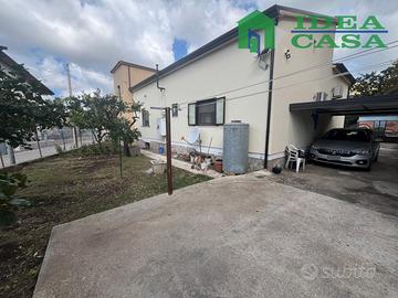 Villa singola su unico livello sul corso principale del paese. Doppio fronte strada, la villa circondata su tre lati da giardino di 380mq e uno da posto auto coperto. Internamente composta da; corridoio, cucina abitabile, soggiorno due camere da letto e bagno. Piano seminterrato ampia cantina.