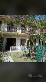 Villaggio Rivazzurra di Sellia Marina vendo villetta a schiera a pochi metri dal mare su due livelli, 2 camere da letto con balconi, soggiorno con angolo cottura, 2 bagni, 3 ripostigli, veranda pavimentata, doppio giardino, posto auto riservato.