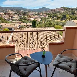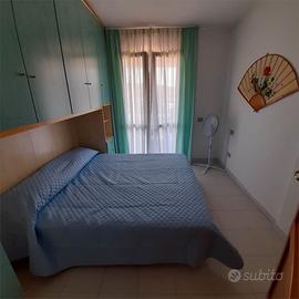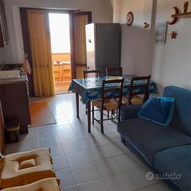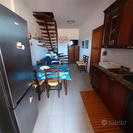 Vendesi villetta a schiera situata all'ingresso del paese, in posizione strategica: a pochi passi dai servizi e dal centro, ma al riparo dal rumore della movida notturna. L'immobile si sviluppa su due piani collegati da scala interna ed è così composto: Piano terra: ingresso su soggiorno con angolo cottura, bagno e veranda abitabile. Piano superiore: due camere da letto e terrazza panoramicissima. Pertinenze: garage seminterrato, funzionale e attrezzato con servizio e doccia (ideale per il rientro dalla spiaggia). La proprietà viene ceduta completamente arredata e dotata di impianto di termocondizionamento. Classe energetica D.