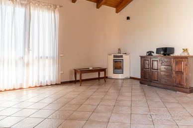Al piano terra si trovano: un ampio soggiorno di 42 mq con stufa a pellet, l'angolo cottura (con possibilità di ricavare una cucina abitabile), il disimpegno, un bagno finestrato con doccia e vasca, una camera matrimoniale e due camere singole.