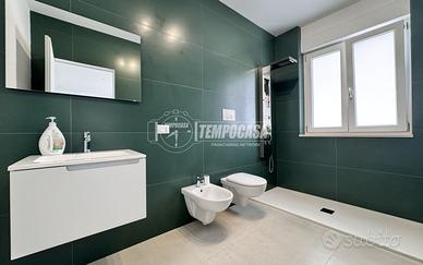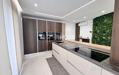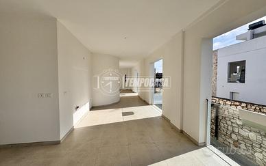 Scendendo al piano inferiore si apre il cuore della casa: un ampio salone con cucina a vista , pensato per la convivialità, con ripostiglio e accesso diretto al cortile tramite grandi vetrate che donano luce e continuità tra interno ed esterno. La zona notte si completa con disimpegno, cameretta, bagno, zona lavanderia e una suite matrimoniale dotata di cabina armadio e un grande bagno privato.