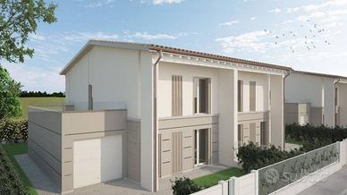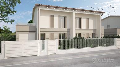 Rif:(128048310) - Via XXIV Maggio: in zona tranquilla e lontano dal traffico proponiamo nuovo intervento di 2 villette bifamiliari. L'immobile, disposto su 2 livelli vuole unire l'innovazione di impianti di ultima generazione ad uno stile piu tradizionale e Familiare. La villetta è composta da ampio soggiorno, cucina abitabile, bagno e studio al piano terreno, mentre troviamo 3 camere da letto e secondo bagno al piano primo. Giardino ed area cortilizia sui 3 lati della villa oltre ad un comodo garage con bascula motorizzata. Immobile In classe A4 con riscaldamento a pavimento, 5 kw di pannelli fotovoltaici, addolcitore, cancello automatico, zanzariere. - Classe: A4 - IPE: 175.00 kWh/mq anno