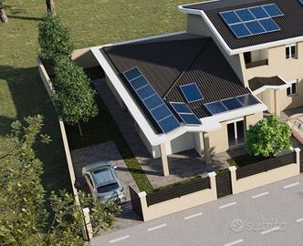 Proponiamo, in corso di costruzione, Villa Capo schiera, tutta al piano terra, con ottima esposizione, luminosissima, tipologia quadri vano, di circa mq 100 utili interni, più veranda e marciapiede attorno alla casa.