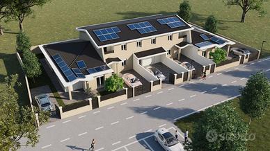 Proponiamo, in corso di costruzione, Villa Capo schiera, tutta al piano terra, con ottima esposizione, luminosissima, tipologia quadri vano, di circa mq 100 utili interni, più veranda e marciapiede attorno alla casa.