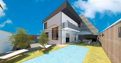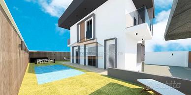 Proponiamo in vendita in Via Carlo Poerio, a pochi passi dal centro di Calvizzano ma lontani dal traffico della viabilità principale. DIMORA ELEGANTE è un progetto edilizio situato in un contesto urbanistico di pregio. DIMORA ELEGANTE è l'insieme di 3 ville residenziali con giardino privato e piscina. Il Parco è completamente recintato ed ogni villa ha spazio per posti auto, i collegamenti interni sono tutti realizzati con i migliori materiali presenti sul mercato. La certificazione energetica in classe A garanzia di una costruzione progettata e realizzata con i migliori criteri di sostenibilità ambientale ed efficienza energetica. La certificazione energetica classe A non solo attesta e garantisce la riduzione dei consumi energetici, ma assicura anche la creazione di un microclima ottimale all'interno degli edifici, studiato per garantire comfort e benessere a chi vi abita, attraverso la presenza di diversi fattori concomitanti come l'isolamento dell'involucro dell'edificio e l'efficiente impianto di riscaldamento. Le ville saranno tutte cosi composte: PIANO INTERRATO: tavernetta, con 1 accessorio e zona deposito, con accesso tramite scala con il piano terra PIANO RIALZATO: zona giorno, con salone, cucina abitabile, 1 accessorio etc. PIANO PRIMO: zona notte con 3 camere da letto, 2 accessori, e cabina armadio; PIANO COPERTURA: area superiore per installazione di eventuali pannelli fotovoltaici. Ogni unità avrà area giardino attrezzata comprensiva di piscina ed attacchi esterni per cucina. Possibilità di personalizzare la tua VILLA dalla divisione interna, all'impiantistica fino alla scelta dei rifinimenti, ossia: bussole interne, pavimenti e rivestimenti di prima scelta. Il prezzo di vendita richiesto è di € 550.000,00
