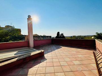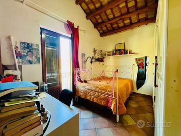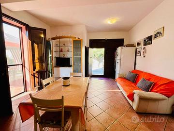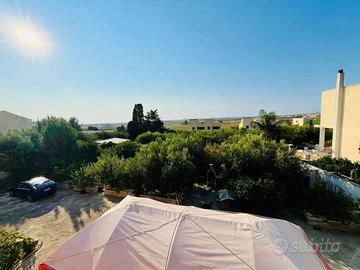 La villetta si sviluppa su due livelli, per una superficie complessiva di 205 mq ed è composta al piano terra da ingresso su soggiorno CON ARCO IN PIETRA, altro ampio soggiorno con CAMINO, cucina abitabile dalla quale si accede ad una veranda coperta di 20 mq con vista sul giardino, un bagno con doccia ed una dispensa. Al secondo piano troviamo la zona notte con una camera matrimoniale, due camere doppie ed un ampio bagno fornito sia di doccia che di vasca. Sempre al primo piano troviamo una terrazza panoramica, dalla quale è possibile godere di una SUGGESTIVA VISTA MARE ED ISOLE. Il lotto misura complessivamente 650 mq e comprende un'ampia zona parcheggio, UNA LEGNAIA, un deposito per gli attrezzi ed un giardino con ALBERI DI ULIVO. L'immobile, si presenta in ottimo stato ed è dotato di IMPIANTO DI RISCALDAMENTO alimentato con gas metano con TERMOSIFONI in ogni stanza, infissi in legno con VETRO CAMERA e IMPIANTO DI CLIMATIZZAZIONE CALDO/FREDDO con due split nelle camere da letto e un altro nel salone. La villetta è inoltre rifinita con TETTI IN LEGNO CON TRAVI A VISTA, PAVIMENTI ANTICHI CON CEMENTINE DECORATE, SCALA IN PIETRA E FORNO A LEGNA IN CUCINA. La riserva idrica è costituita da una cisterna di 30.000 litri.