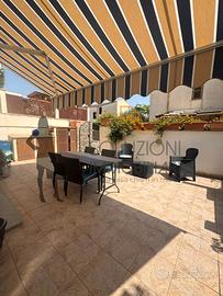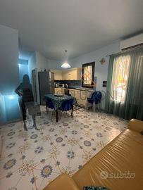 Soluzioni Immobiliari propone in vendita villetta a schiera a due elevazioni fuori terra di circa 90 mq. oltre aree esterne, sito a San Vito Lo Capo, precisamente nella via San Vito Oltre Brenta. L'abitazione è composta al piano terra da ampio soggiorno/cucina dove vi è collocata la scala per il collegamento ai piani ed un comodo bagno di servizio, al primo piano da disimpegno, due comode camere da letto di cui una con balcone ed un bagno con doppi servizi, doccia e finestra, al piano cantinato da disimpegno, due camere da letto, bagno e riposto.