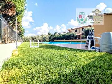Villetta a Schiera in residence di recente costruzione cosi disposta: ingresso salone, cucina soggiorno, cameret wc doccia, esterni con cucina in portico, barbecue, prato inglese e posti auto, primo piano: 2 camere matrimoniali cameretta, wc bagno, ripostiglio, terrazzo, allarme, videosorveglianza, piscina condominiale, area giochi bimbi.