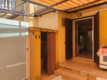 Al piano terra ingresso indipendente con corte esclusiva utilizzazzabile / posto auto scoperto, ingresso in soggiorno con cucina a vista e primo bagno di servizio, sul retro ulteriore veranda attrezzata con doccia esterna.