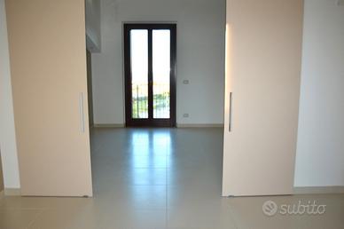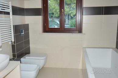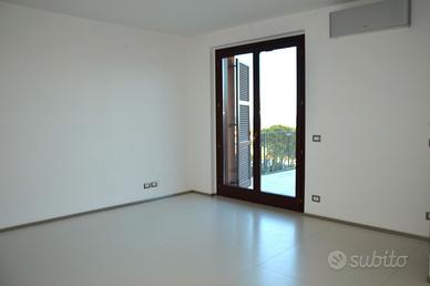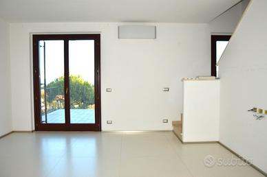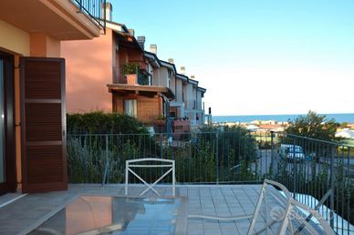 Zona Spinnaker di Porto Potenza Picena, vista mare, in un contesto residenziale di recente costruzione, proponiamo in vendita villetta a schiera di mq. 90,00 circa, con corte esclusiva di mq. 130,00 circa dotata di una mini-piscina. Il piano terra ospita un'area living completa di soggiorno e cucina a vista con terrazza panoramica mozzafiato e bagno di servizio. Al piano superiore, troviamo una camera matrimoniale dotata di cabina armadio, balconi, un ripostiglio soppalcato un bagno con doccia. Vi è la possibilità di trasformare la cabina armadio in una cameretta data la sua metratura e la presenza della finestra. La proprietà include inoltre un locale cantina con lavanderia e garage al piano S1 di mq. 83,00 circa ed un posto auto esterno. L'immobile è dotato di cappotto termico, climatizzazione, riscaldamento a pavimento, allarme, impianto di videosorveglianza e di aspirazione centralizzata.