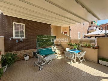 In una zona tranquilla e ben collegata proponiamo in vendita una villetta a schiera di circa 125 mq, distribuita su più livelli e perfetta per chi cerca spazi ampi e funzionali. Al piano seminterrato troviamo una comoda sala hobby, ampia e versatile, con accesso diretto al box doppio dell'immobile, una soluzione ideale per chi desidera praticità e comfort. Salendo al piano terra si apre un accogliente salone, una cucina separata e abitabile, un bagno finestrato e due giardini pavimentati, entrambi collegati rispettivamente al salone e alla cucina, ideali per momenti di relax o per pranzi all'aperto. Il primo piano ospita due spaziose camere matrimoniali, entrambe dotate di sfogo esterno, una con balcone e l'altra con terrazzo. Completa il livello la presenza di due bagni, di cui uno interno ad una delle camere, a garanzia di privacy e comodità. All'ultimo piano si trova una terza camera da letto, servita da un ulteriore bagno, con accesso ad un ampio terrazzo che regala ulteriore respiro e vivibilità alla casa. La villetta si presenta in buone condizioni, già dotata di impianto di climatizzazione, inferriate di sicurezza e zanzariere. Una soluzione ideale per famiglie che desiderano indipendenza, spazi all'aperto e la comodità di un box doppio collegato direttamente all'abitazione. COSA ASPETTI CHIAMACI AL NUMERO 06.90.21.26.91 E FISSA UN APPUNTAMENTO!! Questa descrizione ha valore puramente indicativo e non costituisce elemento contrattuale.