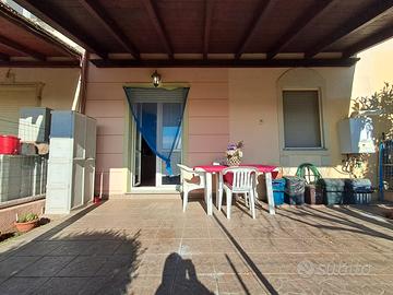 La composizione è la seguente : Ingresso da portoncino indipendente, vialetto d'accesso alla proprietà in ampio salone, disimpegno, bagno e cucina abitabile con accesso al secondo cortile, molto comodo e dove mangiare all'esterno e passare piacevoli serate in tranquillità.