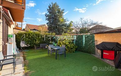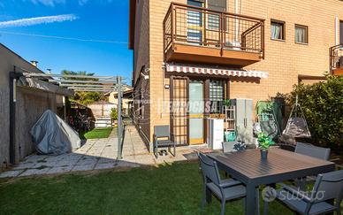 Da sottolineare l'ubicazione della soluzione come ultima villetta al fondo che consente di avere più privacy ma soprattutto 3 lati liberi da sfruttare con la presenza di un terrazzo fronte casa che si estende anche lateralmente ed un giardino sul retro che è stato completamente ripianato e attualmente coperto con un manto di erba sintetica che consente di tenerlo più pulito e curato.