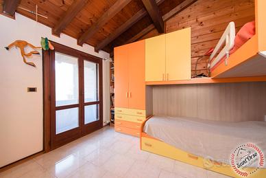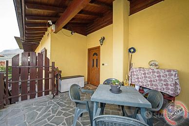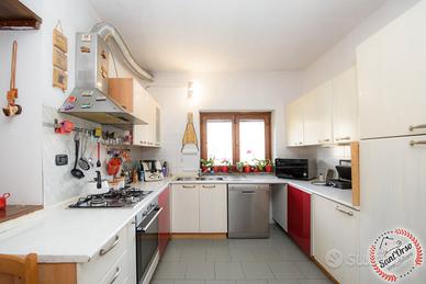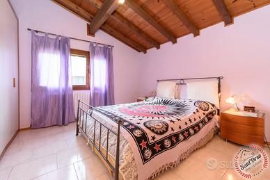 In contesto riservato e tranquillo, all'interno di un piccolo complesso di sole tre unità abitative, graziosa villetta a schiera laterale, situata a pochi minuti dai principali servizi e caratterizzata da un'ottima esposizione a sud-ovest, che garantisce luminosità durante tutta la giornata. L'immobile si sviluppa su più livelli collegati da scala interna ed è così composto: al piano terra ingresso su luminoso soggiorno con cucina a vista, accesso diretto alla corte esterna adibita a giardino privato e bagno di servizio; al piano primo zona notte composta da tre camere da letto, bagno e due balconi; al piano interrato locale deposito attualmente adibito a taverna e cantina. Completa la proprietà una autorimessa collegata direttamente all'abitazione e un secondo box auto con accesso indipendente, ideale per garantire comodità e spazio aggiuntivo. L'abitazione è dotata di riscaldamento autonomo con stufa idro pellet, oltre a caldaia GPL per la produzione di acqua calda sanitaria, assicurando efficienza e gestione indipendente dei consumi. Soluzione ideale per chi cerca tranquillità, indipendenza e spazi ben distribuiti, senza rinunciare alla vicinanza ai servizi. La descrizione e i dati degli immobili sono indicativi e non costituiscono vincolo contrattuale.