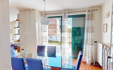 Ingresso, ampio e luminoso soggiorno e sala da pranzo entrambi con uscita sulla corte e GIARDINO di 52mq, cucina semi-abitabile e bagno finestrato.