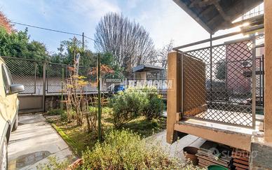 Posto auto sul davanti all'interno della proprietà con proprio passo carraio (con possibilità di realizzazione di un box con struttura removibile), Pezzo di giardino sul davanti e giardino con terreno coltivabile sul retro.