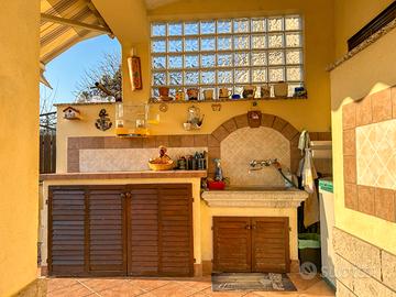 o Pergolato con bellissima cucina esterna e tende elettriche per piacevoli momenti all'aperto