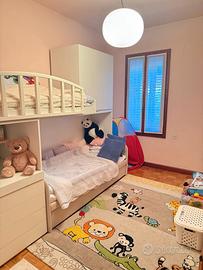 camera da letto matrimoniale completa + cameretta bimbi a 2 piani con armadi e cassetti + camera singola con letto e armadietto