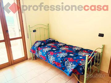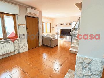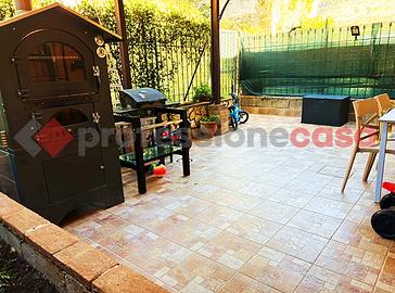 Nella parte alta del paese e più precisamente presso il complesso residenziale denominato " Villaggio degli Dei", proponiamo la vendita di una graziosa villetta a schiera su 2 livelli con spazio esterno, composta da: piano terra con ingresso e salone, cucina abitabile con accesso sul terrazzo attraverso una porta finestra, ripostiglio e bagno. Tramite il vano scala si accede alla zona notte al piano superiore, composta da tre camere ed un secondo bagno. La proprietà è dotata di giardino, aria condizionata e viene venduta parzialmente arredata.