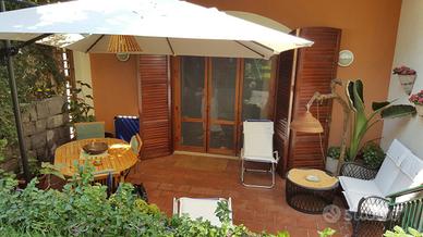 Vendesi villetta a schiera con giardino all' ingresso su due livelli cucina soggiorno lavanderia due camere da letto e due bagni completamente arredato