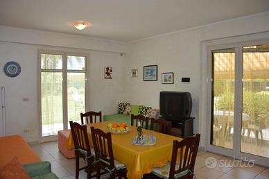 L'immobile è stato mantenuto in perfette condizioni e l'ampio giardino è stato curato settimanalmente per ogni mese dell'anno con finalità di casa per vacanza: una zona soggiorno comprende l'angolo cottura in stile rustico che era stata arredata con divani letto e un grande tavolo da pranzo, una camera da letto matrimoniale era stata arredata con l'armadio a muro, il bagno completo invece si trova separato dal corridoio tra il soggiorno e la camera.
