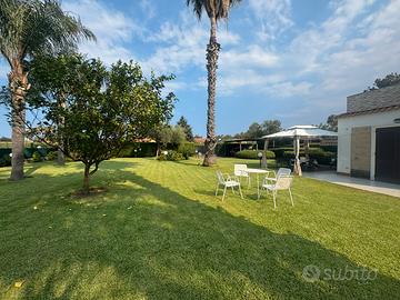 La vera rarità è rappresentata dall'ampia superficie destinata al giardino con prato e alberi di palma, di ulivo e di limoni, oltre che dalle varie siepi ornamentali, sul quale è possibile realizzare anche una piscina. Ideale per chi desidera trascorrere l'estate calda sfruttando il clima mite della località, organizzando anche feste ed eventi serali.