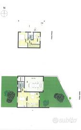 PIANO TERRA: ingresso, scala a muro, open-space con la cucina e accesso diretto al giardino, disimpegno con ingresso all' autorimessa ,servizio al piano. Vano tecnico con accesso dal giardino privato.