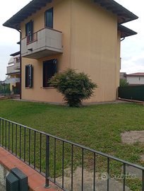 Villetta a schiera con due camere, bagno con vasca idromassaggio, salotto e cucina separati, scala interna per raggiungere il garage, con doppio box auto, lavanderia grande con doccia di servizio. Cortile privato ( non condominiale) in comune con l'appartamento sopra, posto auto privato acquistabile nel cortile.