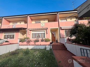 L'abitazione dispone di ingresso indipendente preceduto da un piccolo giardinetto e una corte privata d'ingresso, aprendosi internamente su un ampio soggiorno con caminetto, un disimpegno, un bagno con doccia e una cucina abitabile che affaccia sul retro, dove troviamo un'ulteriore corte privata con accesso diretto al piano interrato.