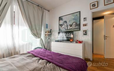La soluzione si presenta in buone condizioni interne e non necessita di interventi di ristrutturazione ed è così disposta: ingresso che conduce al luminoso soggiorno con grandi vetrate che affacciano su un vivibile terrazzino, grande cucina abitabile separata, scala in muratura che accompagna al piano superiore dove si sviluppa la zona notte composta dalla camera padronale, la cameretta e due bagni finestrati: uno con vasca ed uno con box doccia.