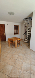 All'interno troviamo una cucina/soggiorno e al piano superiore una camera da letto con balcone, una stanzetta adibita a cameretta e un bagno. Semi-arredato.