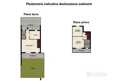 L'ingresso indipendente conduce al piano terra, dove troviamo un soggiorno luminoso, una cucina separata e abitabile e un bagno di servizio. Da questa area si accede ad una veranda coperta che si affaccia sul giardino privato e recintato, ideale per godersi momenti di relax all'aperto.