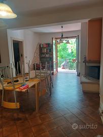 La villetta presenta un giardino di ingresso dal quale si accede ad un salone con camino, ampio terrazzo, cucina abitabile, camera matrimoniale, bagno, P.s due camere matrimoniali di cui una con bagno in camera, camera singola e bagno con vasca. Piano int. taverna con camino , completa la proprietà tre posti auto coperti.