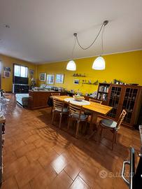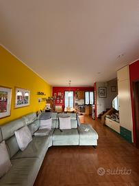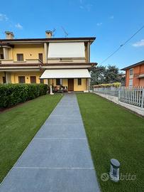 Al piano terra un grande open Space si affaccia sul giardino appena rifatto con piccolo portico, tenda motorizzata ed erba sintetica. La cucina a vista ha una porta finestra che si apre su un comodo balcone. Il piano terra è completato da bagno finestrato con doccia. Il primo piano presenta 3 camere ( 1 singola e 2 matrimoniali) grande balcone che si affaccia sul campo sportivo. Il tutto completato da bagno con vasca da bagno.