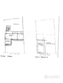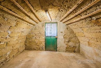 Lingresso, leggermente sottoposto, conduce a un ampio e caratteristico salone con volte a botte, tinello, cucina, bagno e a un locale deposito di circa 90 mq, anchesso con volte a botte. Da qui, tramite una scala interna, si accede alla cantina sottostante.