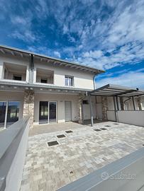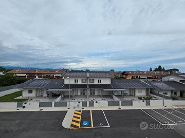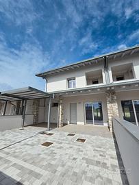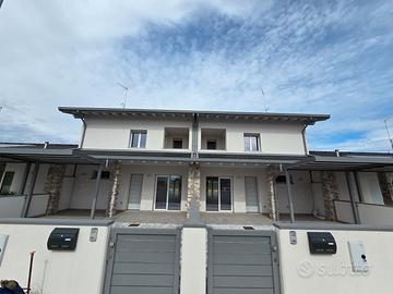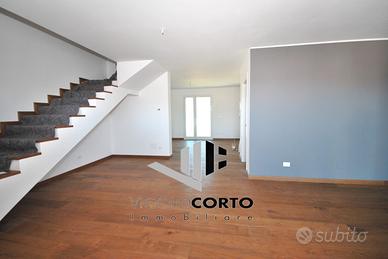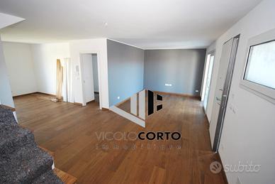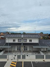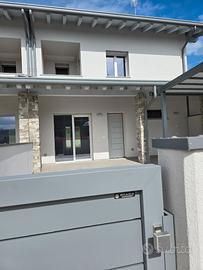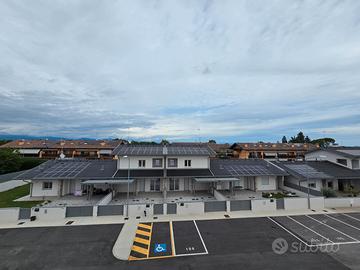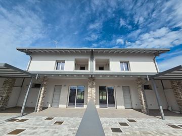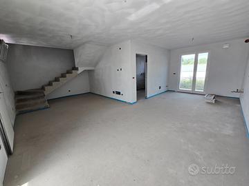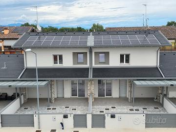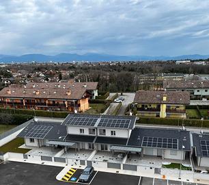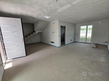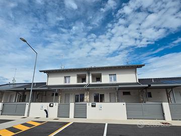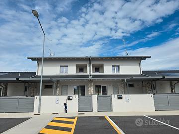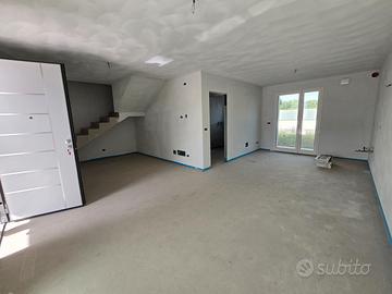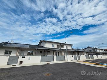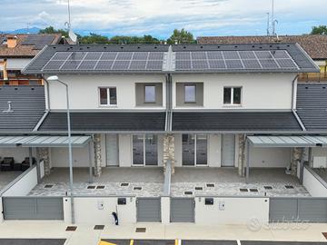 RIFERIMENTO INTERNO: A3 - In insediamento residenziale di nuova realizzazione zona Villa Primavera, proponiamo alla vendita villetta centrale con giardino. L'immobile si sviluppa al PT e P1 e presenta una funzionale distribuzione degli spazi. PT: ingresso nel soggiorno con zona cucina che può anche essere resa indipendente, bagno con antibagno e locale tecnico con zona lavanderia e di servizio. Dalla scala a vista si accede al primo livello dove troviamo la camera matrimoniale con balcone, due altre camere ed il secondo bagno finestrato. Il sottotetto è accessibile dall'interno tramite botola con scala, e può essere utilizzato come ulteriore grande zona ripostiglio. All'esterno un gradevole portico con zona pavimentata e posto auto coperto sul fronte, e sul retro altra porzione di giardino per un totale di circa 124mq scoperti. La classe energetica A4 (nZEB) con massimo standard energetico ne riassume le caratteristiche tecniche: impianto fotovoltaico con pompa di calore, riscaldamento a pavimento, serramenti in alluminio triplo vetro con avvolgibili elettrici e zanzariere, involucro cappotto esterno ad alta efficienza, pannelli interni per un perfetto isolamento acustico, tetto ventilato. Numerose le predisposizione previste: colonnina ricarica auto, climatizzazione, impianto allarme, canna fumaria per caminetto/pellet. Ampio capitolato a scelta per personalizzare e rendere unica la vostra nuova casa, con consegna chiavi in mano. Tutte le informazioni e la documentazione tecnica presso i nostri uffici. Visite in cantiere programmate per approfondire aspetti e metodologie costruttive.