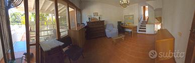 vendesi a Partanna Mondello in uno splendido residence in mezzo al verde , con ingresso sia da via dell' Olimpo sia da via Chirone , villetta a schiera su piu, livelli attualmente divisa in due appartamenti ma immediatamente riunificabile in una sola unità : all'ingresso vi è un piccolo giardino e 1 terrazza, 1 saloncino all'ingresso, 2 cucine soggiorno , 3 bagni , 3 stanze da letto , 1 terrazzino panoramico a primo piano, un cortile interno sul quale si affaccia una dependance separata dalla villa , box al chiuso e posti auto non assegnati all'aperto .