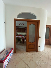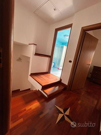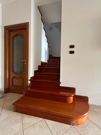 Villetta a schiera disposta su 3 piani, compresa di garage e mansarda rifinita . L'abitazione dispone di due accessi fronte e retro .Completa di salone e cucina al piano terra, scale in legno massello tra il piano terra ed il primo piano con un bagno molto ampio con vasca a livello intermedio. Al primo piano ci sono 3 camere da letto e un altro bagno con doccia doppio lavandino e armadio a muro . Sul soffitto la botola con scala retrattile per accedere alla mansarda rifinita perfettamente. Gli infissi sono tutti in pvc effetto legno con persiane ,le porte in legno massello e vetri decorati. Scala in legno e parquet Dossieur tutta la zona notte. Predisposto per riscaldamento a gasolio, nella casa è presente una stufa a pellet . La cantina seminterrata è al grezzo ma dispone di vari spazi ,locale con pozzo e riserva idrica. Cortile davanti e dietro l abitazione.