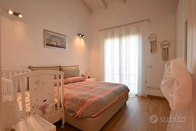 Completano la proprietà due posti auto esterni.L'immobile è dotato di impianto di riscaldamento/raffreddamento a pavimento ,allarme e videocitofoni, impianto fotovoltaico, colonnina di ricarica per auto elettriche, tapparelle elettriche, zanzariere.