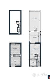 INTERNO: L'immobile, disposto su 3 livelli è così composto: ingresso, soggiorno con accesso al TERRAZZO dal quale si accede al giardino privato e cucina aperta.