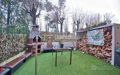 soluzione luminosa, ampia, giardino, box auto doppio in larghezza e sopratutto in zona tranquilla.