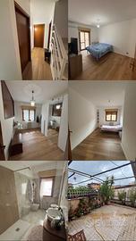 NO AGENZIE Villino a schiera di circa 200 mq in Via delle Primule, Collefiorito di Guidonia, disposto su 3 livelli + seminterrato con box doppio. Via silenziosa e residenziale, adiacente ai principali servizi come farmacie, supermercati, scuola, chiesa e parco. In costruzione nuova stazione ferroviaria a meno di 1 km. Al pian terreno ampio salone con aria condizionata e apertura su un grande terrazzo mattonato, cucina, bagno finestrato ristrutturato; al 1 piano pavimento spc effetto legno, 3 camere da letto di cui 1 con balcone e aria condizionata e 1 bagno finestrato con doccia walk in ristrutturato; al 2 piano mansarda con 2 ambienti, aria condizionata, balcone e 1 bagno con piccola vasca e lucernario; al piano seminterrato rustico con camino e box doppio. No condominio. Caldaia a condensazione Bosch. Vetri doppi. Alcuni mobili inclusi. Prezzo di 285.000€ Leggermente trattabile
