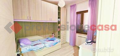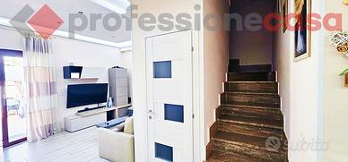 Al centro del paese, vicino a tutti i servizi ed attività principali del paese, vi proponiamo la vendita di una villetta a schiera in complesso residenziale recentemente ristrutturato. Questo immobile è dotato di ingresso indipendente, è dislocato su 3 livelli ed è annesso uno spazio esterno. Al piano seminterrato troviamo un ampio garage/deposito rifinito con serranda automatica e bagno. Piano terra composto da: ingresso con un luminoso salone e angolo cottura con affaccio nella corte privata. Al piano superiore troviamo la zona notte composta da una camera matrimoniale con balcone, 2 camerette e doppi servizi. L'immobile è dotato di cappotto termico, infissi nuovi, zanzariere, caldaia a condensazione, pompa di calore, impianto fotovoltaico di 9kw, con 20 kw di accumulo, colonnina per la ricarica delle auto elettriche, solare termico per l'acqua calda sanitaria, building automation, addolcitore e autoclave con serbatoio da 500 litri, canalizzato per il raffrescamento della zona notte e due posti auto in cortile condominiale.